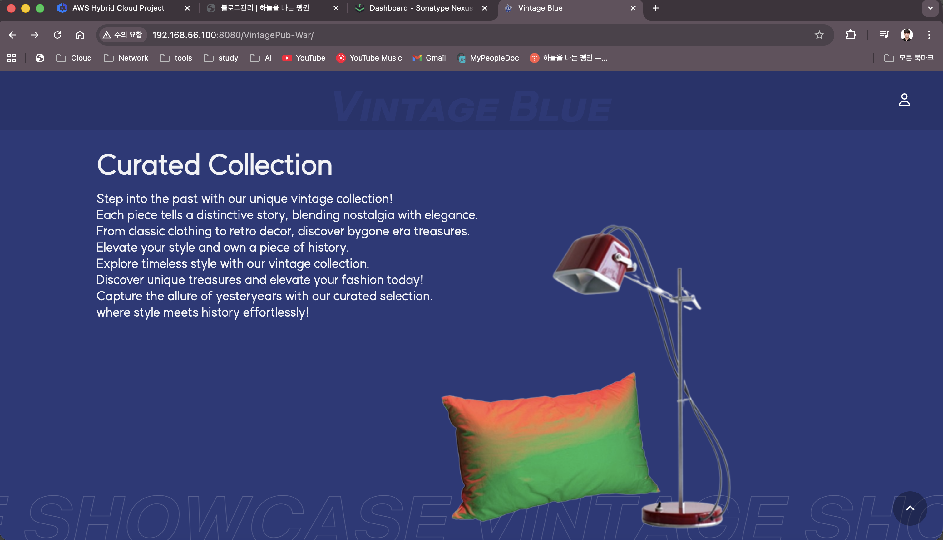 - 현재 Vintage 쇼핑몰의 웹사이트 메인 화면의 띄워진걸 확인할 수 있다!!