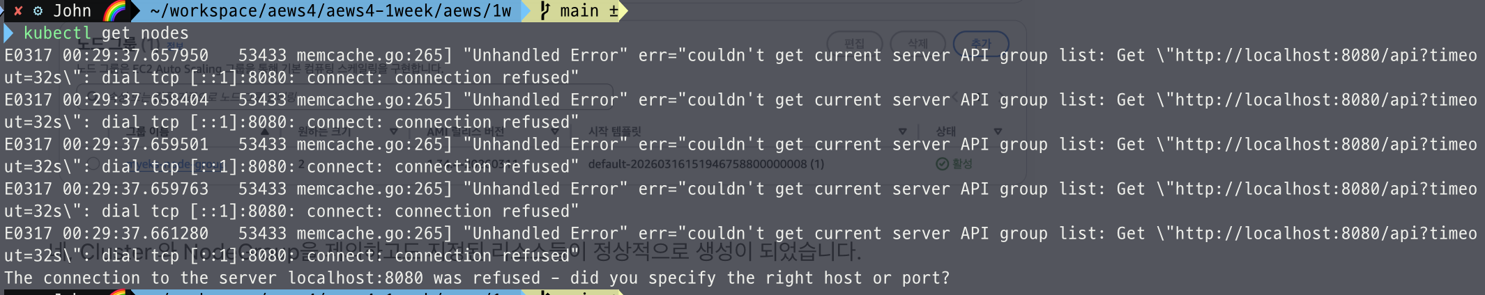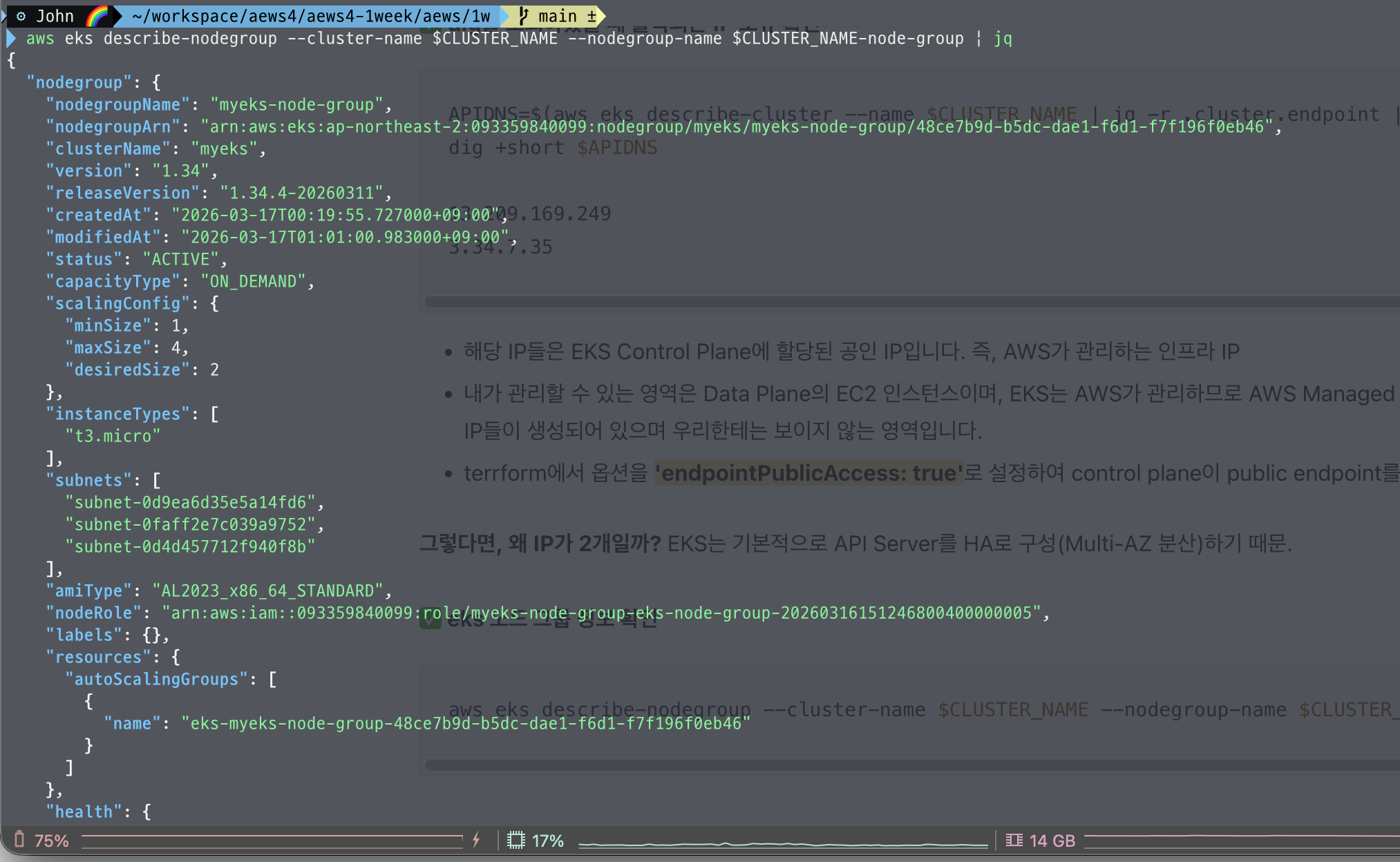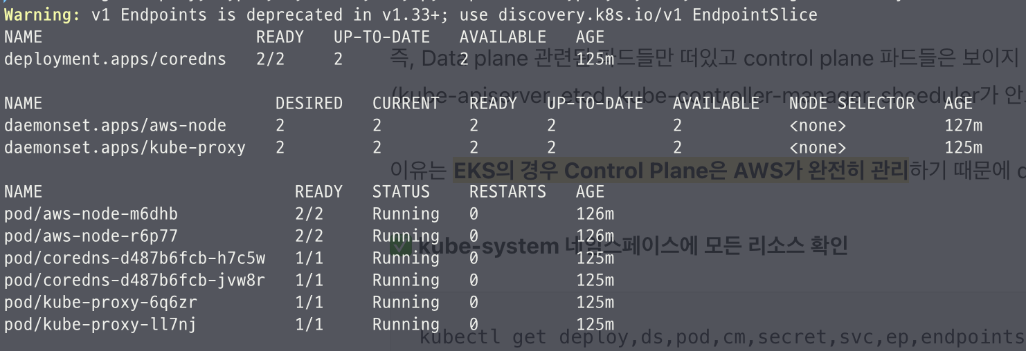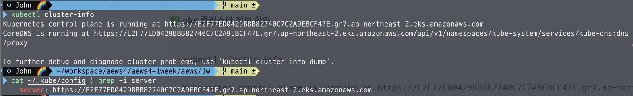 - kubectl이 EKS API Server에 정상적으로 연결되어 있다는 의미.