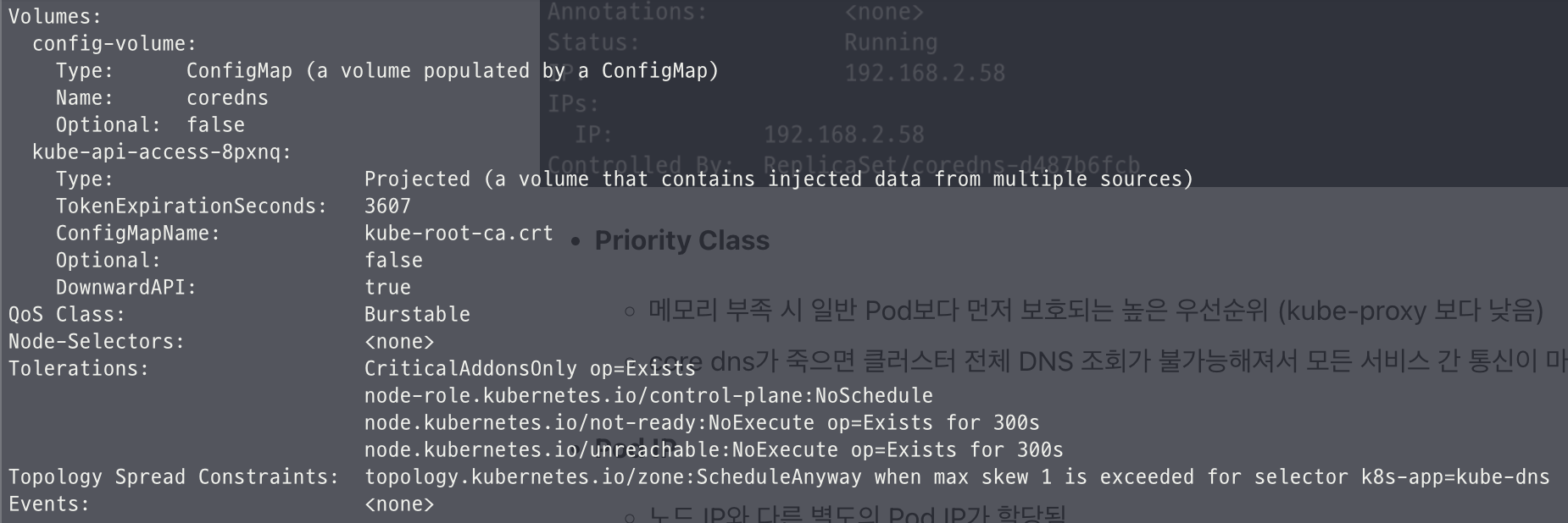 - 메모리 부족 시 일반 Pod보다 먼저 보호되는 높은 우선순위 (kube-proxy 보다 낮음)