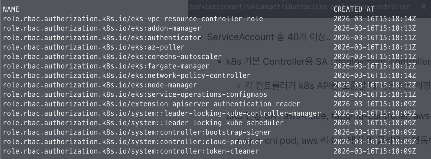 - Terraform 코드에 IAM Role을 직접 작성하지 않았지만 EKS 모듈이 자동으로 생성함.