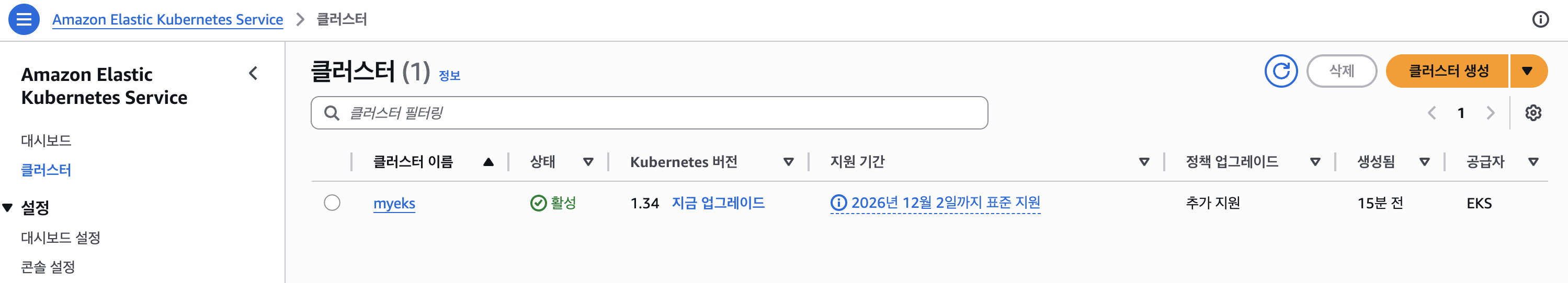 ✅ eks 클러스터 정보 확인