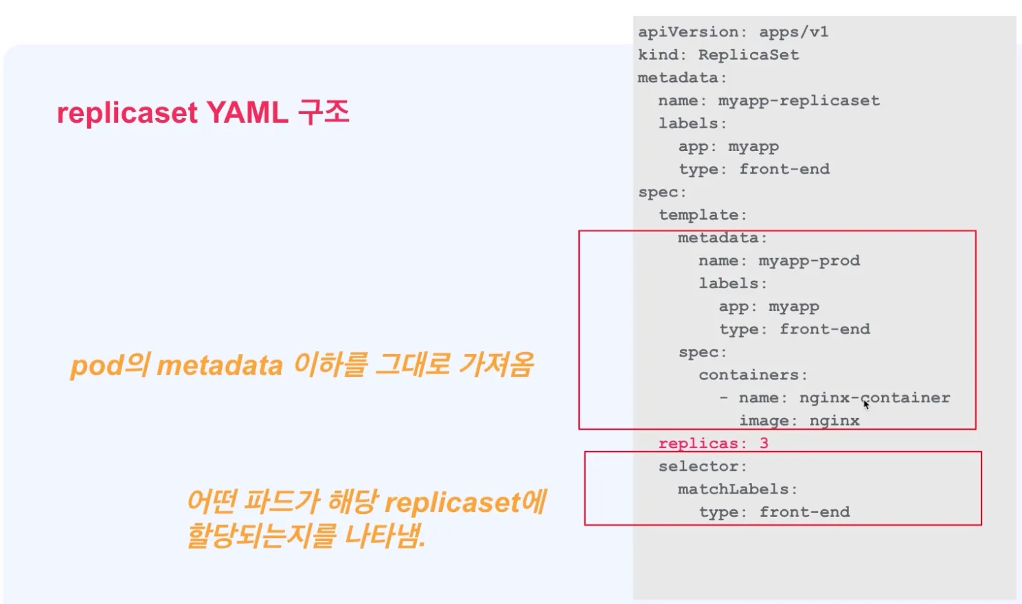 ■ ReplicaSet의 기본 Yaml 구조