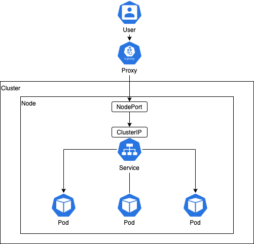 - 클러스터 외부에서 접근은 [Node IP]:[Node Port]