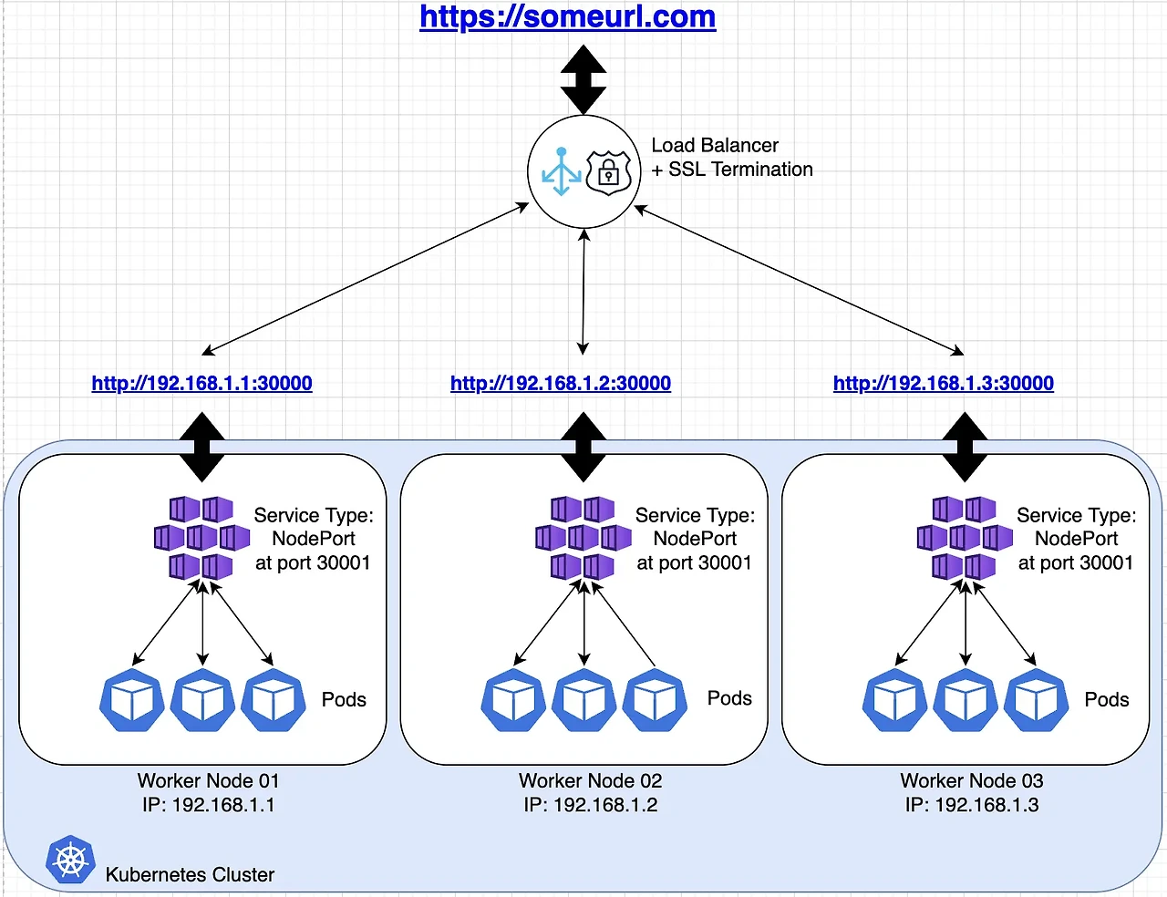 따라서 일반적으로는 proxy를 두고 80 port → NodePort로 포워딩을 하는 layer를 생성