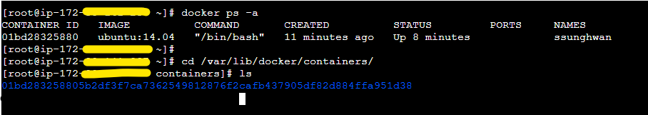 - 그래서 '/var/lib/docker/containers/<container-id> 아래에 여러 파일로 관리된다.