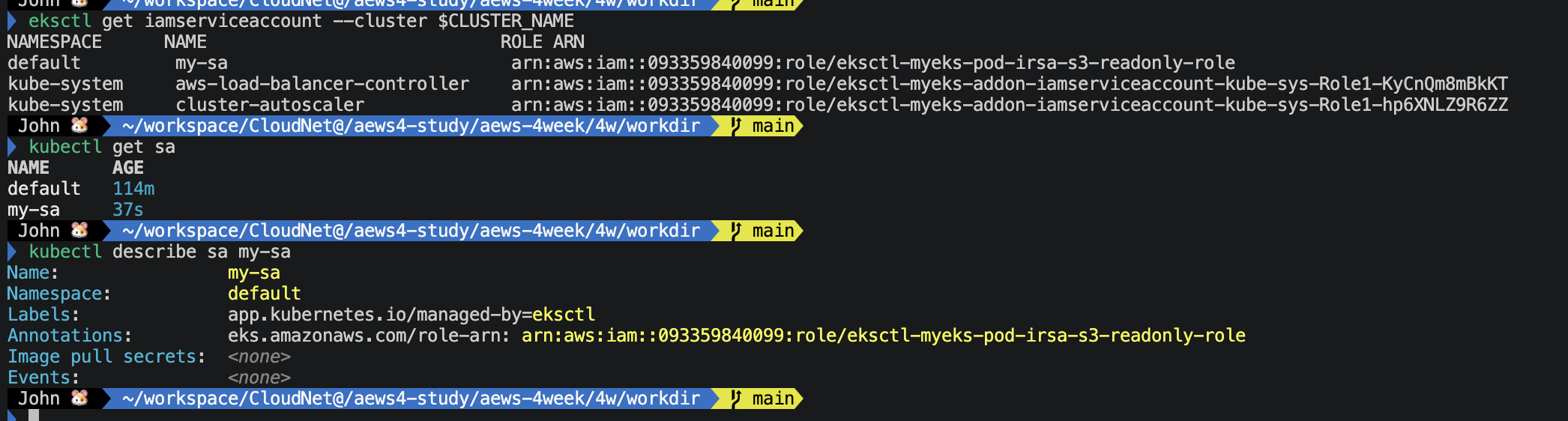 # ServiceAccount에 IRSA 어노테이션 확인